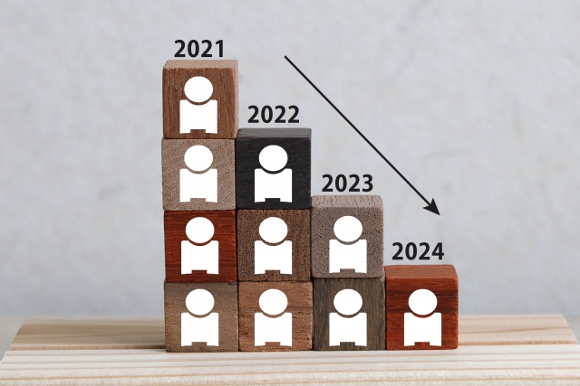2024年問題で特に問題となっているのが、人手不足です。働き方改革によって時間外労働の上限が厳しく制限されたことにより、従来の業務量をこなすためには今まで以上に多くの人手が必要になっています。しかし、人口減少や少子高齢化によって新たな働き手が増えにくい上に、労働時間の短縮で収入が減ることから、製造業界を離れる人も少なくありません。